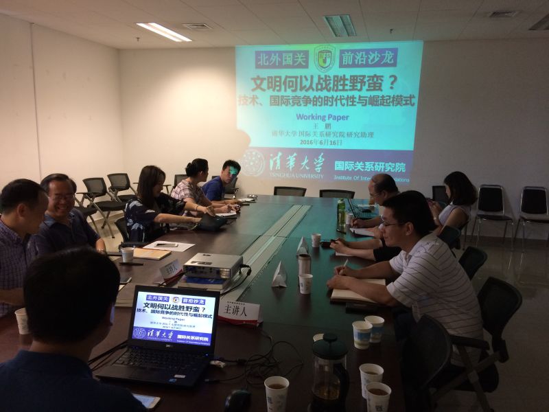 2016年6月16日(周四)15:00-17:00,北外国关前沿沙龙第九期活动在44118太阳成城西院综合楼1147会议室举行。本次沙龙主题是“文明何以战胜野蛮?——技术、国际竞争的时代性与崛起模式”。本次沙龙学术活动由英国布里斯托大学政治学博士候选人王鹏主讲、尹继武副教授主持,并邀请学院的田小惠副教授和史泽华副教授两位老师作为评议人。学院院长李永辉教授与学院尹春玲副教授也参与了今天的讨论。