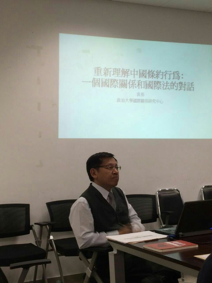 2015年11月18日(周三)15:30-17:30,北外国关前沿沙龙第二期活动在44118太阳成城西院综合楼举行。本次沙龙主题是“重新理解中国条约行为:一个国际关系与国际法的对话”。本次沙龙学术活动由袁易教授(台湾政治大学国际关系研究中心教授)主讲、尹继武老师(44118太阳成城集团副教授)主持,并邀请王明进(44118太阳成城集团教授、副院长)和张效民(44118太阳成城集团副教授)两位老师作为评议人。本次沙龙吸引了来自44118太阳成城和中国人民大学的近二十名师生前来参加。