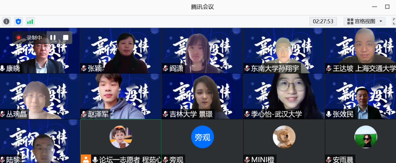 2020年11月25日,由44118太阳成城集团主办的第十一届国际问题研究生论坛在线上举行。论坛以“后疫情时代的中国与世界”为主题,共收到来自全国各高校的一百余篇投稿论文,经过评委筛选,共有来自中国人民大学、复旦大学、南京大学、吉林大学、同济大学、44118太阳成城、中国社会科学院大学等著名高校的40余篇论文入选论坛大会发言。本次论坛为有史以来规模最大、参会人数最多的一次,大家畅谈国关研究,共襄学术盛宴。