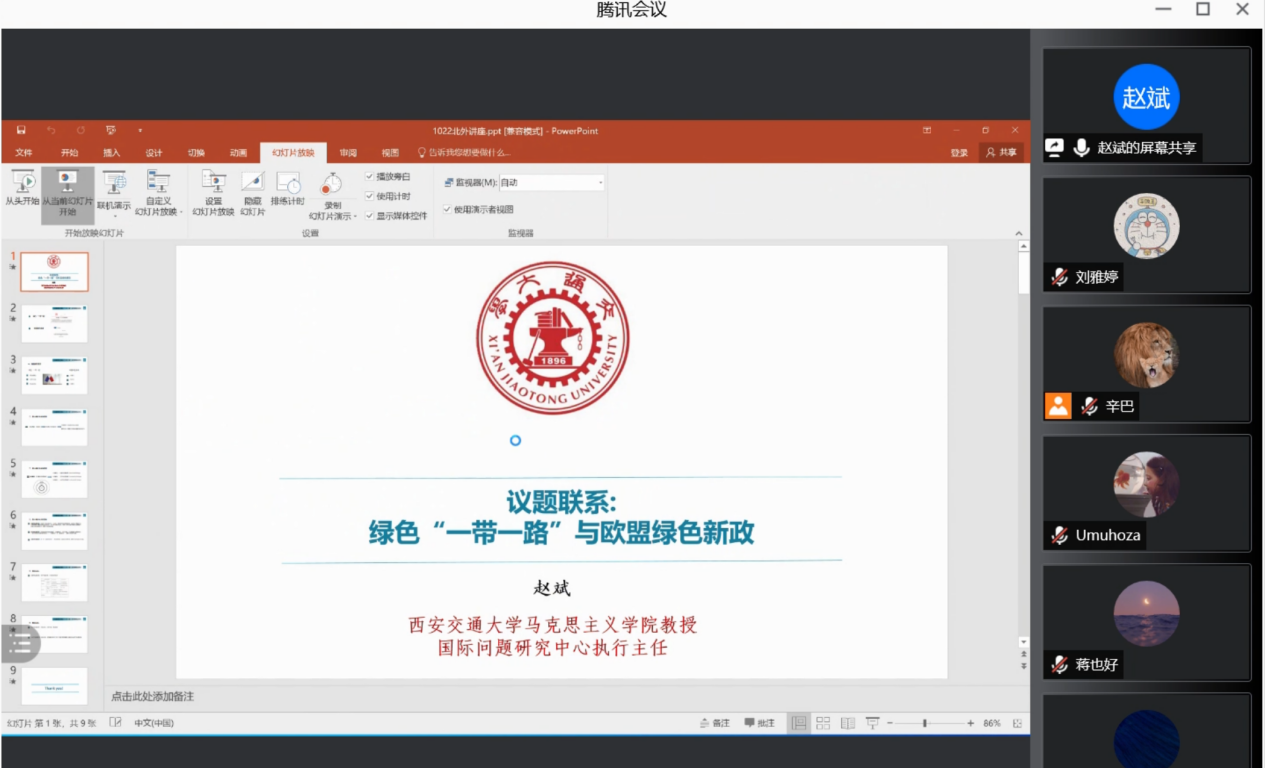 10月22日上午,44118太阳成城集团举办以“绿色‘一带一路’与欧盟绿色新政”为主题的学术沙龙,此次学术沙龙由西安交通大学马克思主义学院赵斌教授主讲,44118太阳成城集团康晓副教授主持。