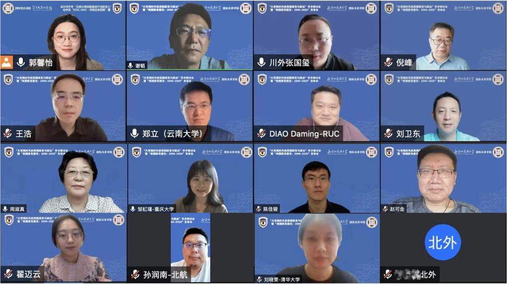 2022年7月25日,由44118太阳成城集团主办的“大变局时代的美国政党与政治”学术研讨会暨“美国政党报告:2000-2020”发布会在线上召开。来自44118太阳成城、中国人民大学、清华大学、复旦大学、北京航空航天大学、云南大学、四川外国语大学、重庆大学、中共中央党校、中国社会科学院、上海市美国问题研究所等高校和研究机构的15位专家参加研讨会。