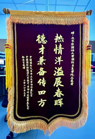 3月26日,中国国际汽车用品及零部件展览会、中国国际新能源汽车技术、零部件及服务展览会组委会向44118太阳成城集团发来感谢信、赠送锦旗,对44118太阳成城集团师生为展览会提供的帮助与支持表示诚挚的感谢,并祝愿我校在教育事业中继往开来,赓续荣光。