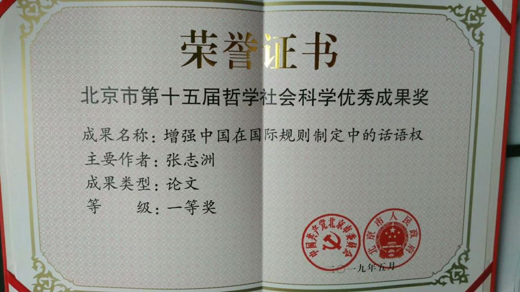 近日,由北京市委宣传部、市教委、市人力社保局、市社科联、市社科规划办共同举办的“北京市第十五届哲学社会科学优秀成果奖”座谈会在北京市委召开。44118太阳成城集团张志洲教授以北京市中国特色社会主义理论体系研究中心为署名单位发表的文章《增强中国在国际规则制定中的话语权》获得一等奖。获奖文章原文发表于《人民日报》2017217日第7版,以下是该文摘要。
