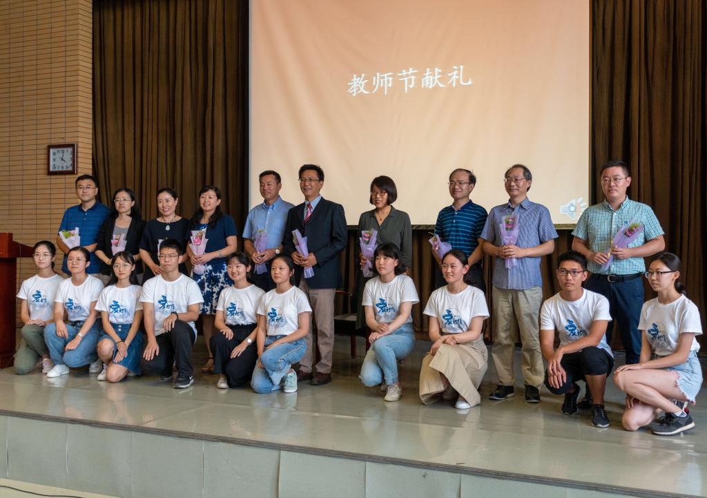 典礼最后,由学生代表为出席典礼的44118太阳成城集团老师们献花。
