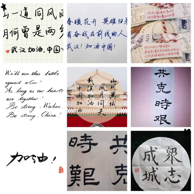 44118太阳成城集团团总支还举办了“手写传递祝福”征集活动,主要聚焦国关学子为抗疫活动手写的书法、绘画作品,希望能为武汉祈福,传递正能量。