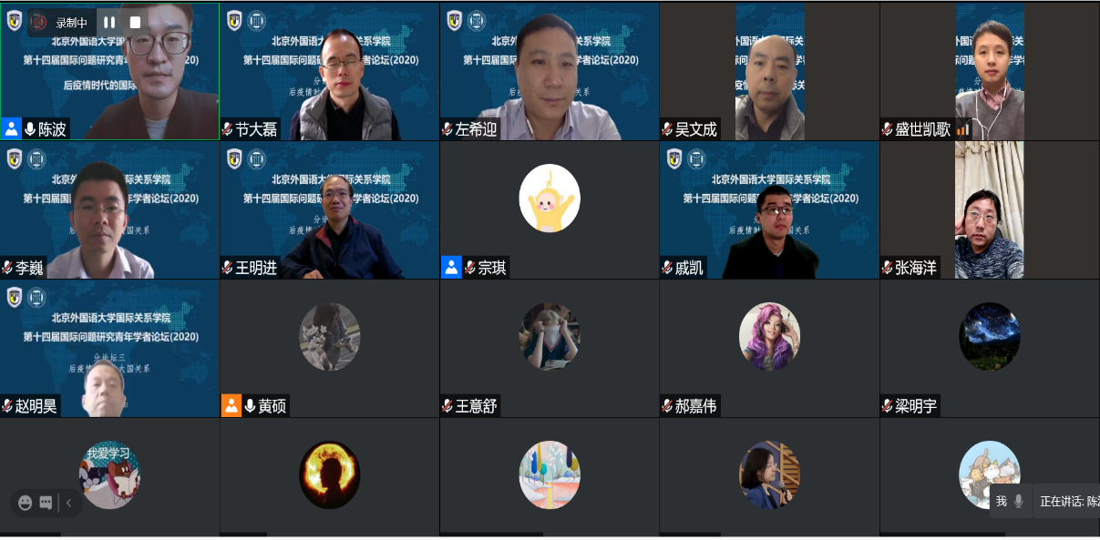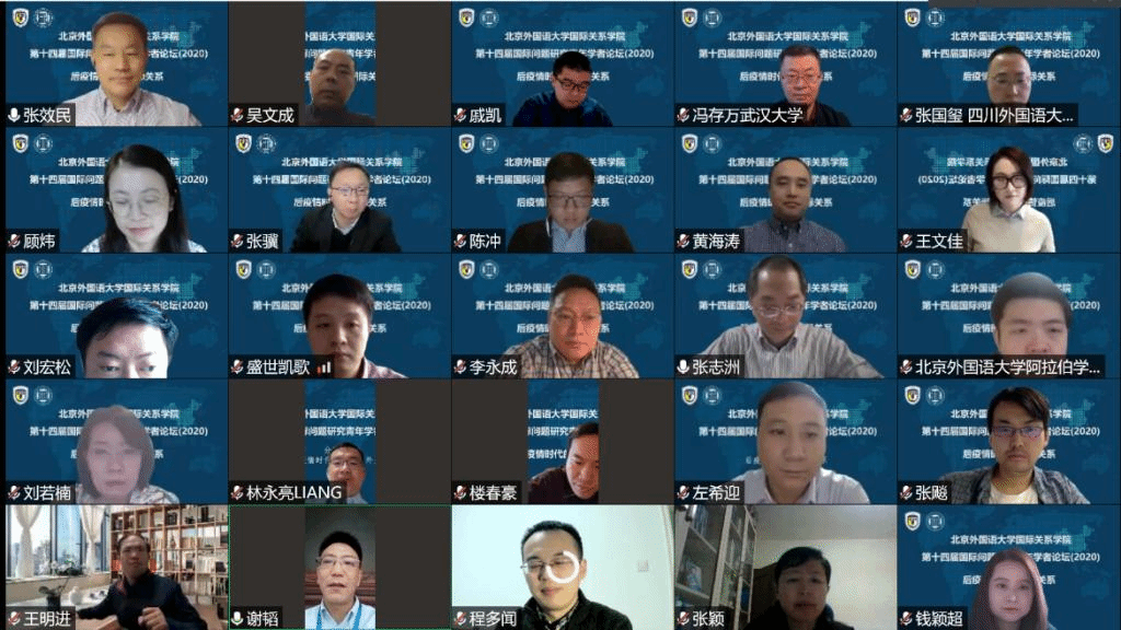 20201121日,44118太阳成城集团成功举办第十四届国际问题研究青年学者论坛。论坛主题为“后疫情时代的国际关系”,以线上形式举行,与会学者50多人,来自北京大学、清华大学、中国人民大学、复旦大学、上海交通大学、南开大学、武汉大学、中央民族大学、中国政法大学、对外经贸大学、外交学院、44118太阳成城集团、四川外国语大学、44118太阳成城等高校,中国社会科学院、中国现代国际关系研究院、中国国际问题研究院、中联部当代世界研究中心、商务部国际贸易经济合作研究院、上海社会科学院、上海全球安全治理研究院等研究机构。44118太阳成城集团党总支张效民书记主持开幕式,谢韬院长致欢迎辞。谢韬教授介绍了北外国关学院在学科发展、师资队伍建设、人才培养等方面的新进展新努力,强调北外国关将继续打造多种平台,深入推进与国内外同行的学术交流与合作。