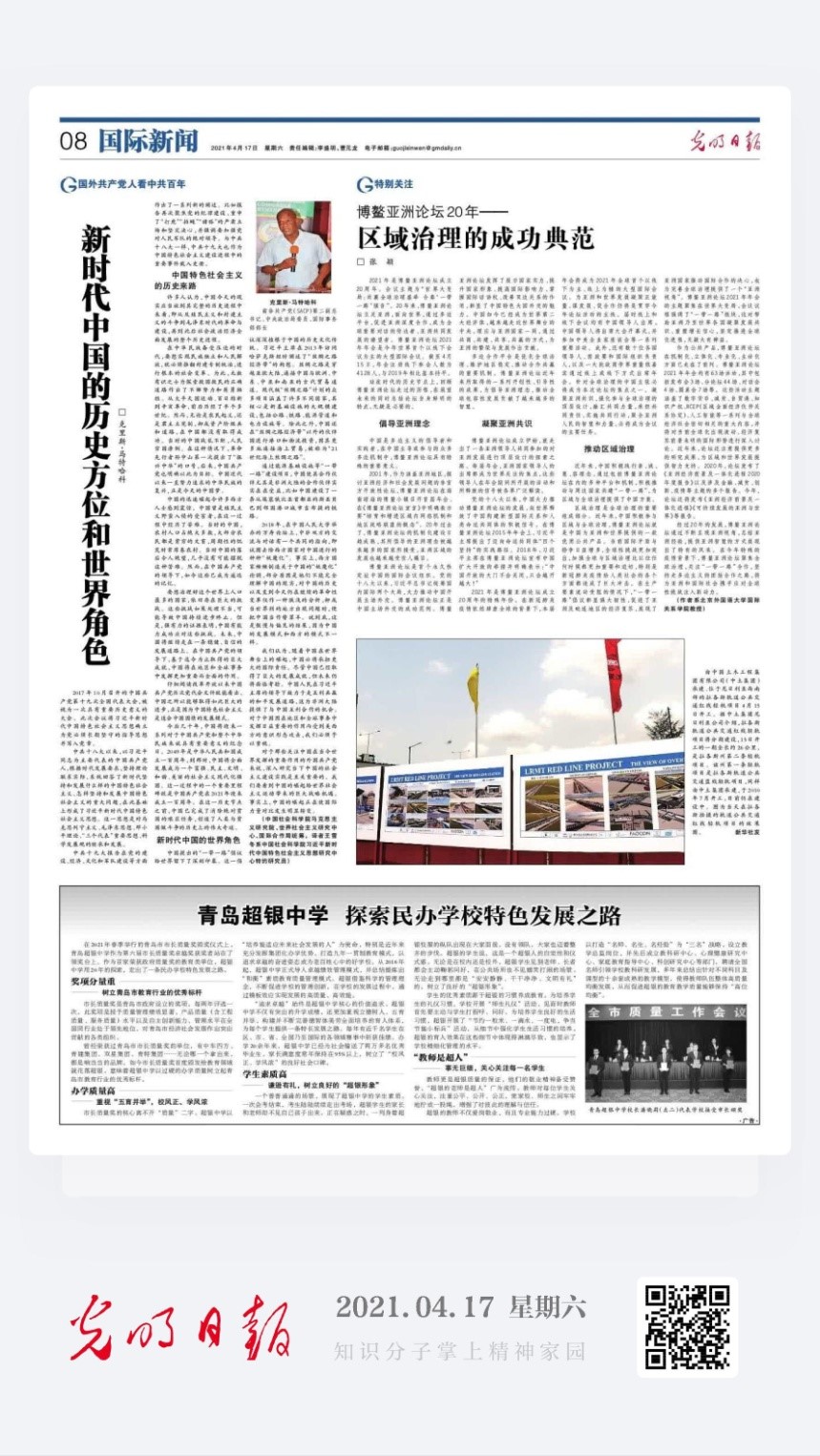 在博鳌亚洲论坛即将召开之际,我校44118太阳成城集团张颖教授在《光明日报》发表署名文章。该文从区域治理的角度解读了博鳌亚洲论坛二十年发展历程,展望了博鳌亚洲论坛未来发展方向。该文是《光明日报》为博鳌亚洲论坛2021年年会预热的系列文章之一,受到广泛关注。