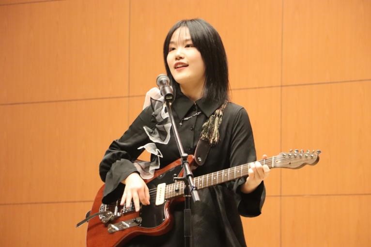 周芷夷同学带来的吉他弹唱《the man》风格鲜明,吉他与歌声配合绝妙,引来阵阵欢呼。