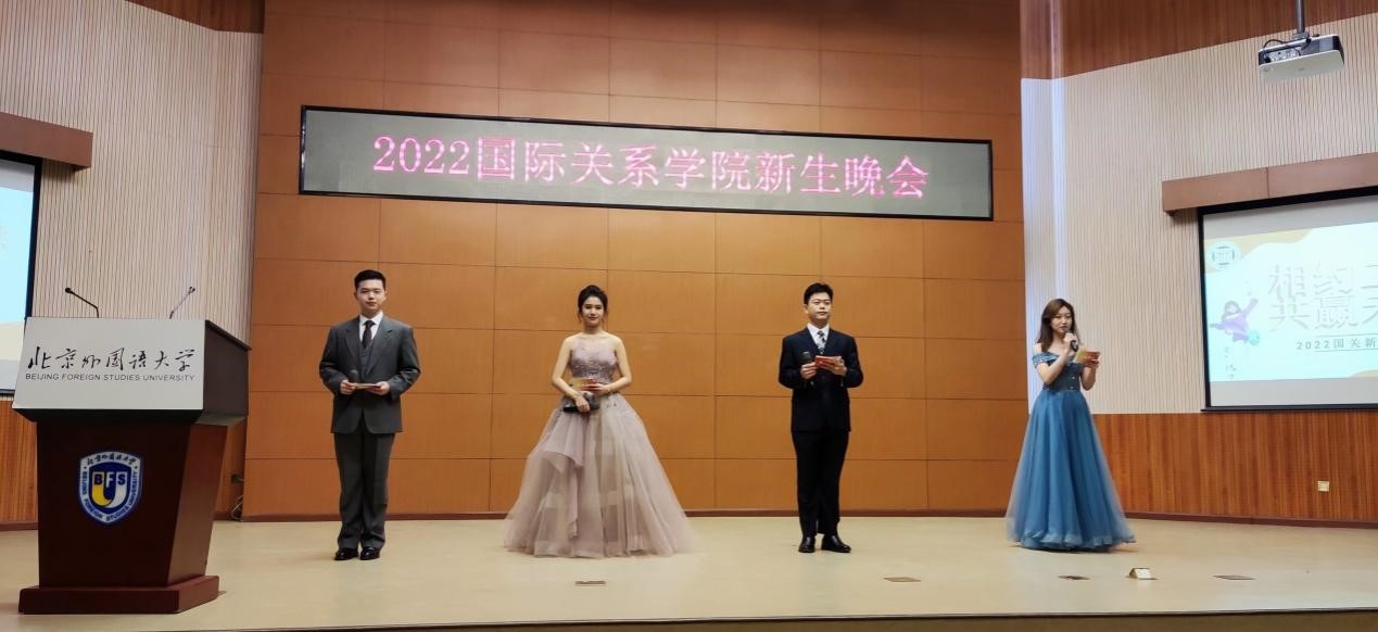 在乐队精彩的演出之后,主持人熊睿,梁予希,李陈虎,信沫含宣布迎新晚会正式开始。