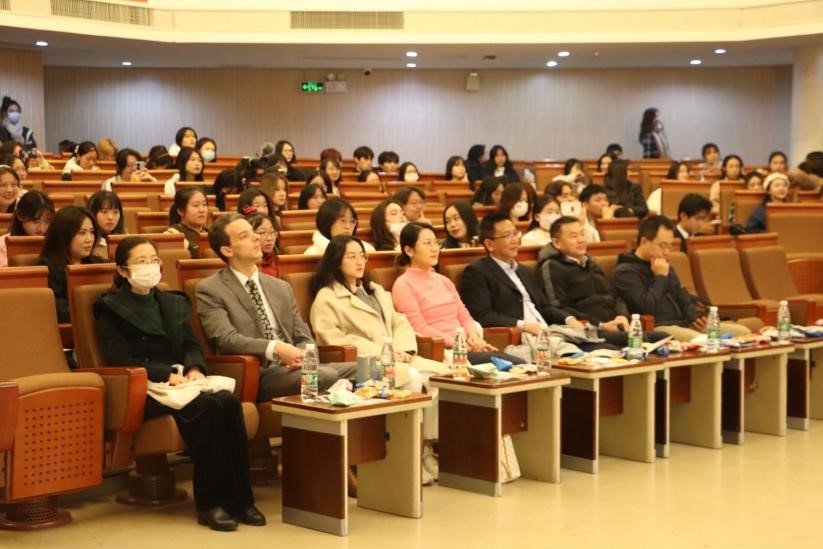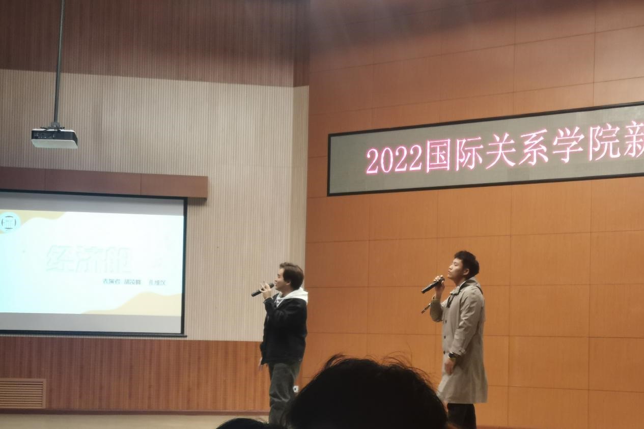首先,谢韬院长上台致辞,谢院长向新生同学们表达了亲切关怀,同时向Richard老师和所有留学生同学致以问候,他表示,无论经历苦与乐,最终我们都会爱上北外,爱上国关。