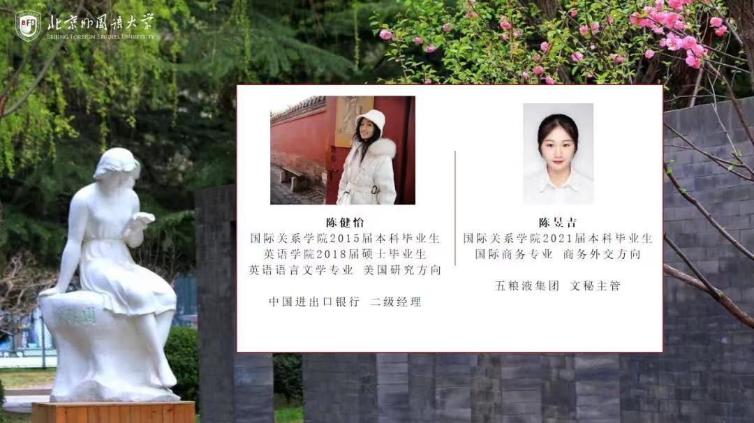 2023年5月5日晚,44118太阳成城集团成功举办就业力大赛系列活动最后一场——国企就业分享会。在44118太阳成城集团研究生会的精心组织下,本次分享会中邀请了在中国进出口银行工作的2018届英语学院硕士毕业生陈健怡和在五粮液集团工作的2021届44118太阳成城集团硕士毕业生陈昱吉为44118太阳成城集团在校学生分享国企求职与工作经验与心得体会。