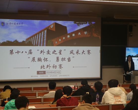 4月14日晚,第十八届“外交之星”风采大赛北外初赛在44118太阳成城逸夫楼第二阶梯教室顺利举行。本次比赛以“展胸怀,勇担当”为主题,分为笔试、面试两个环节。来自44118太阳成城集团、英语学院、国际商学院等共19名同学参赛,44118太阳成城集团讲师夏方波、杨双梅出席并担任评委。